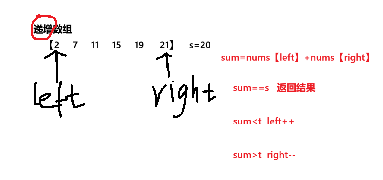 输入一个递增的数组和一个数字s,在数组中查找两个数,使得他们的和正好为s,如果有多对,则随意输出一对即可