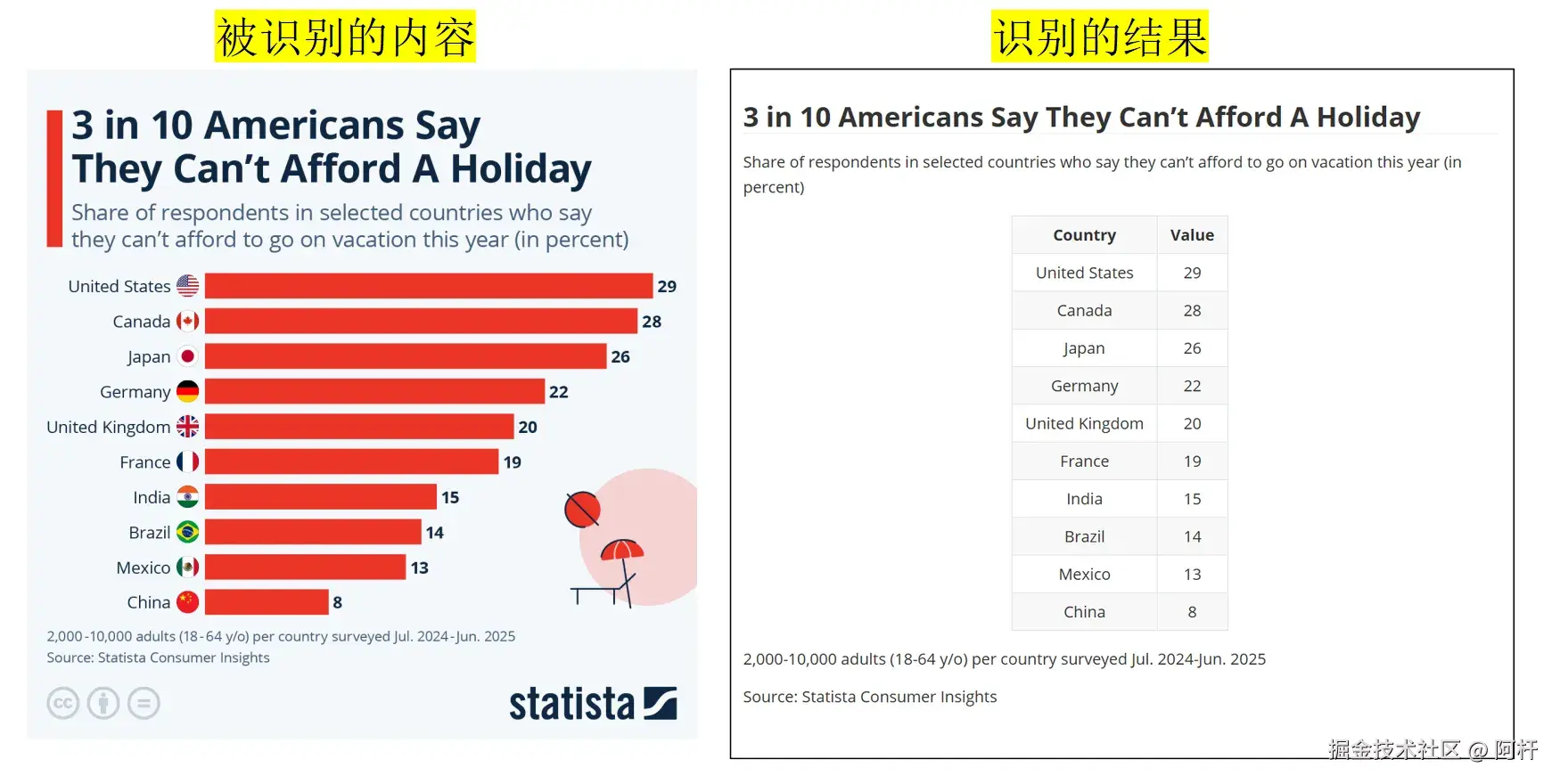 也就是说,PaddleOCR-VL 不只是识别表格,还能把折线图、饼图这些"视觉元素"直接还原为可计算的表格。这项特性在自动财报分析、智能报表系统中是杀手级的。