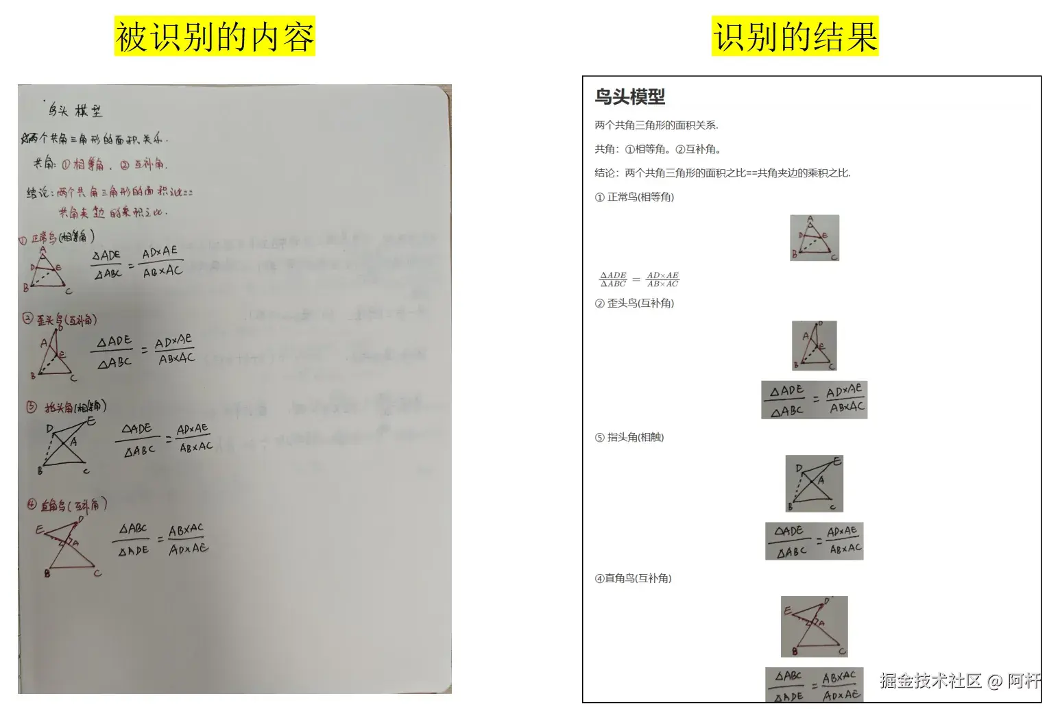 PaddleOCR-VL 识别出的结果居然也出奇地稳定,几乎所有的手写文字都被正确解析,手绘图片也得以保留,笔迹重叠的地方还能通过视觉编码器区分层次,非常适合在在教育行业进行开发使用。