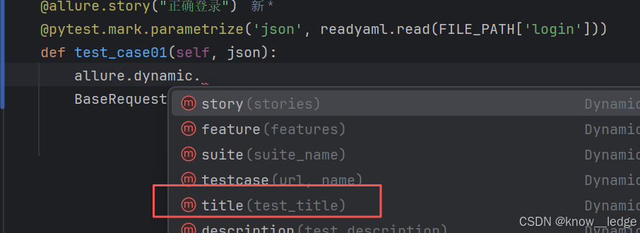 - allure.dynamic.title() 动态设置用例标题,避免所有用例都叫 test_case01