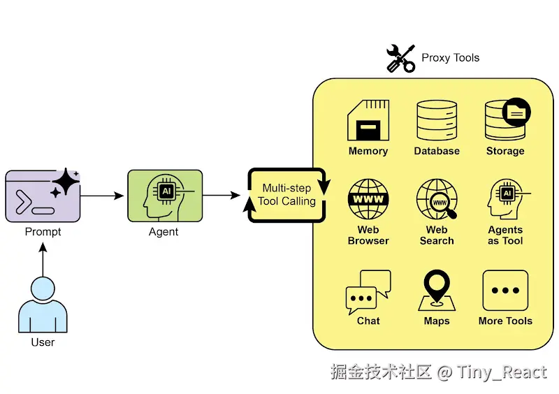 - 工具使用(函数调用)使智能体能够与外部系统交互并获取动态信息。