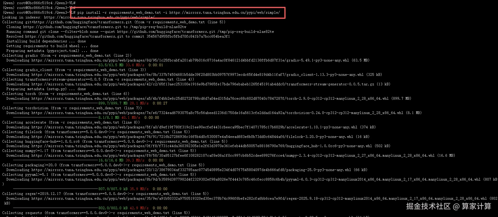 pip install -r requirements_web_demo.txt -i https://mirrors.tuna.tsinghua.edu.cn/pypi/web/simple/