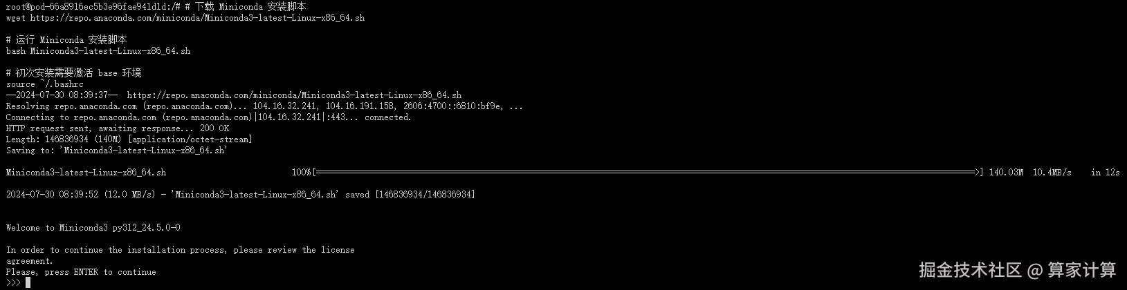 显示如上输出,即安装了相应环境,若没有 miniconda 的环境,通过以下方法进行安装