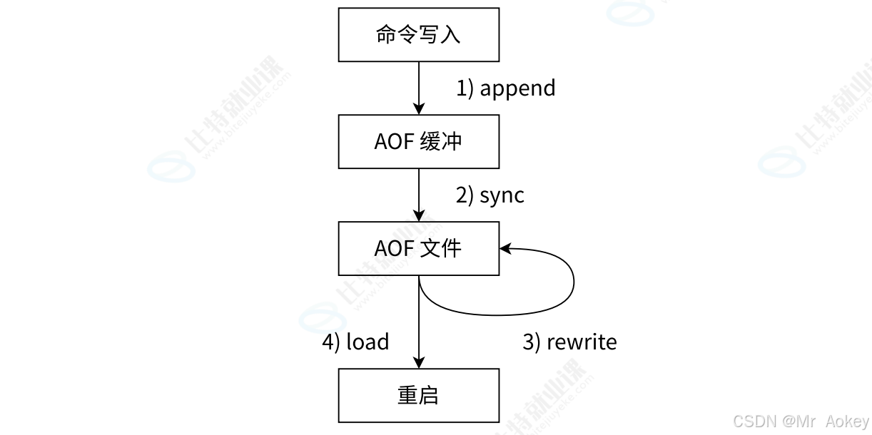 AOF(Append Only File)持久化 是通过记录每次写操作命令来实现数据持久化,它以独立日志的形式存储所有写命令,服务重启时通过重新执行这些命令来恢复数据。有效解决了数据持久化的实时性问题