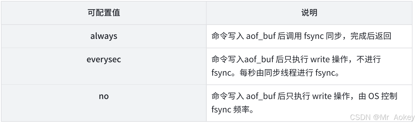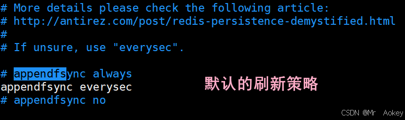 通俗来说,always 是读入一个命令,立马写到硬盘;everysec 是每一秒写入一次硬盘;no是由操作系统自行决定