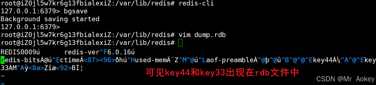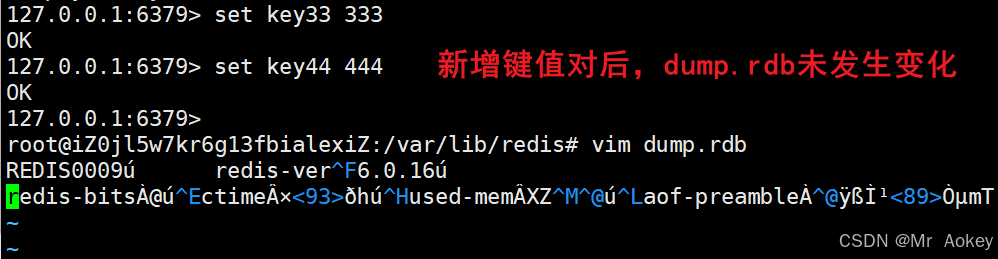 因为刚插入不一定立即生效,需要满足手动或自动触发后才会写入rdb 文件中,执行bgsave: