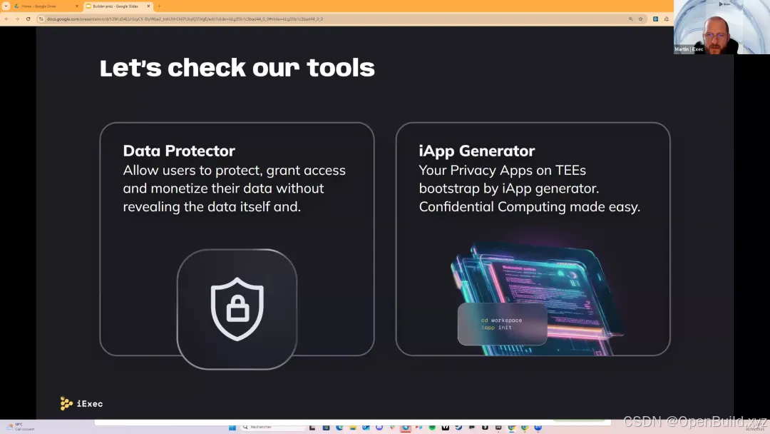 为降低开发门槛,iExec 将复杂的机密计算封装为 "开箱即用" 的工具,Martin 演示了完整操作流程,两大工具的功能与使用步骤如下: