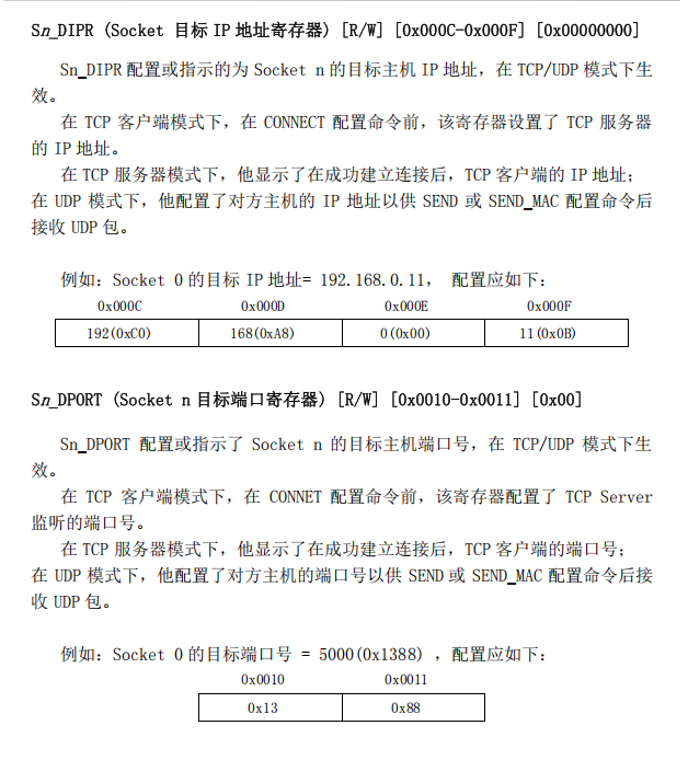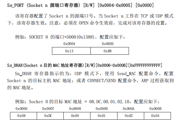 (2)8个Socket寄存器block:这里配置了每个Socket对应的信息,如Socket的模式、命令、状态、中断信息等。