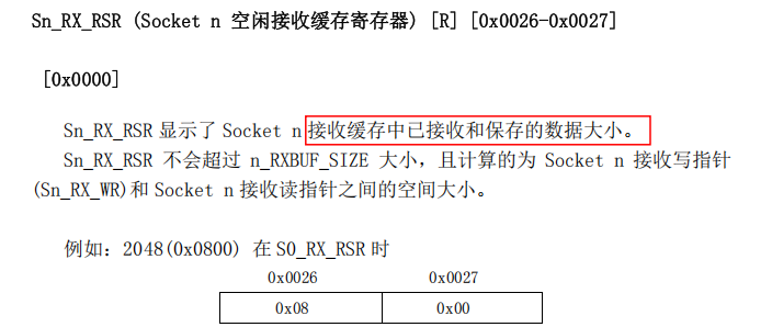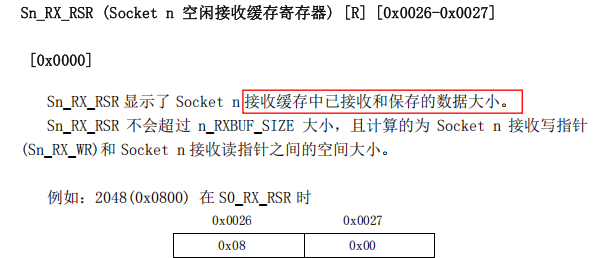 (3)8个Socket对应的接收缓冲寄存器block(共16k):初始时每个Socket分配为2k的缓存,用户可以自己重新通过修改相应的配置寄存器进行修改,但是要保证分配给8个Socket的缓冲大小之和不能超过16k,否则会报错。