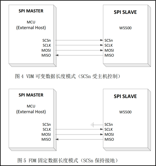 W5500提供了SPI(串行外部接口)作为外设主机接口,有SCSn(低电平有效的片选信号线)、SCLK、MOSI、MISO 共4路信号,且只能作为SPI从机工作。