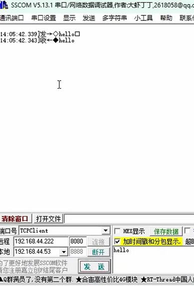 UDP_RecvData(rxBuff, &rxLen, srcIP, &srcPort);
