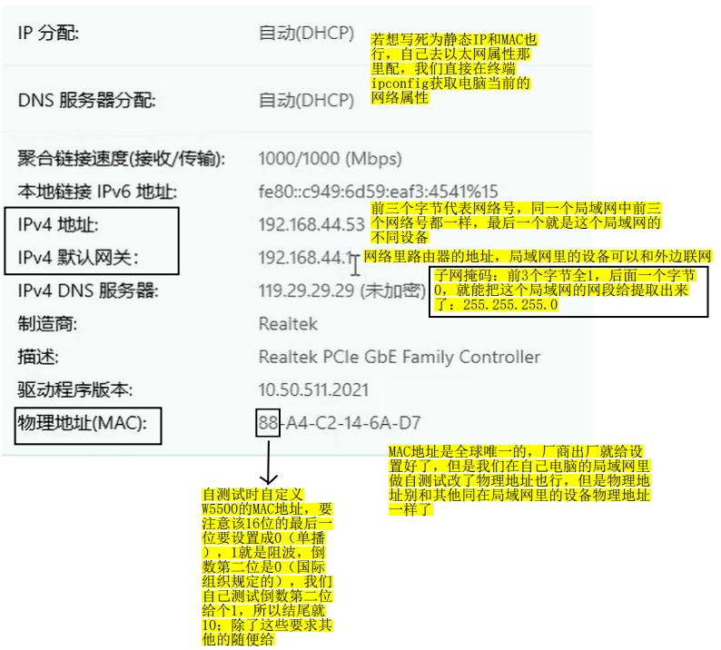 需求描述:根据芯片的手册说明驱动W5500芯片,给它设置基本属性(下图黑框起的),给它连到我们电脑同网段的局域网,测试网络是否连通(ping IP4)(ipconfig是查询自己的)