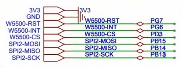 (4)W5500与STM32使用SPI协议进行通讯,连接的是STM32的SPI2外设。