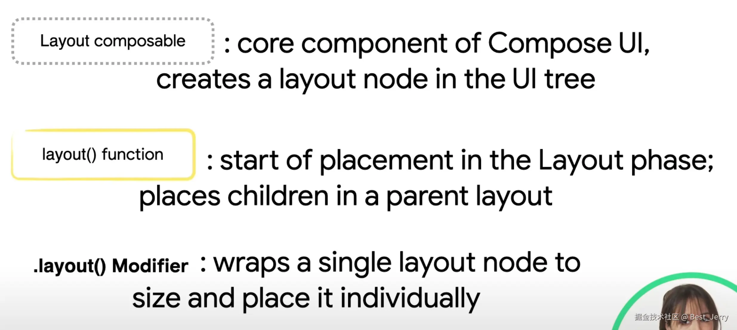 调用 Layout() 可组合项是布局阶段和构建自定义布局的起点。