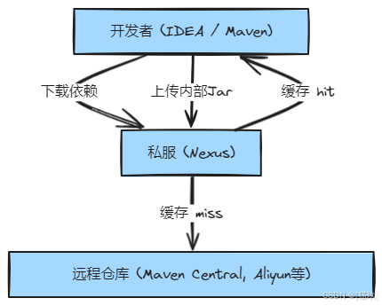 hosted(宿主仓库) | 存放内部发布的 jar 包 | 公司自研模块、内部工具类 |