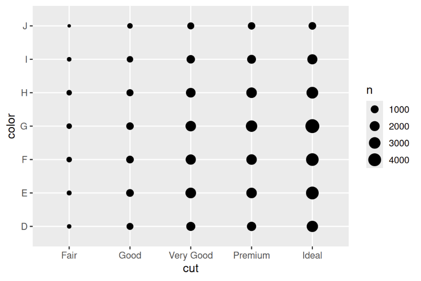 将坐标平面划分为 2d bins,然后使用 fill 颜色显示每个 bin 中落入多少点。geom_bin2d()