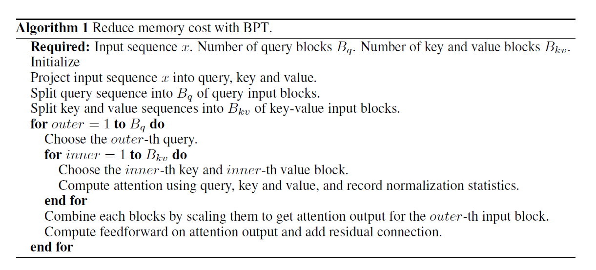 BPT的想法是fa中通过Qi计算得到的Oi可以直接和后续ffn进行融合,不用等fa完全计算完成,这样可以减少访存,并且减少激活值内存。伪代码如下