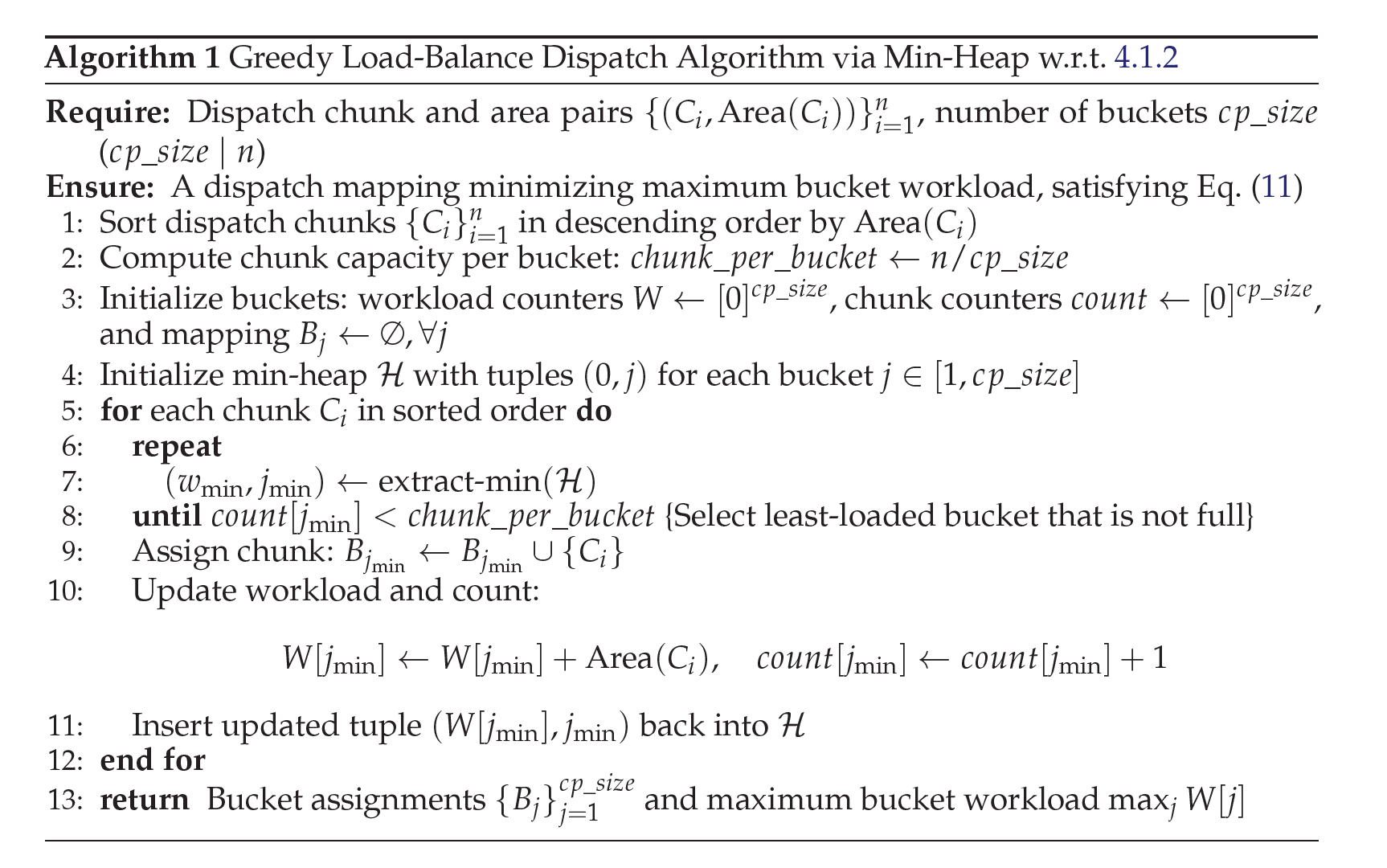 问题具体化为,n个Q chunk,分配给cp_size个桶,每个桶的chunk数相等(保证token粒度的平衡),最小化最大的桶的mask area。