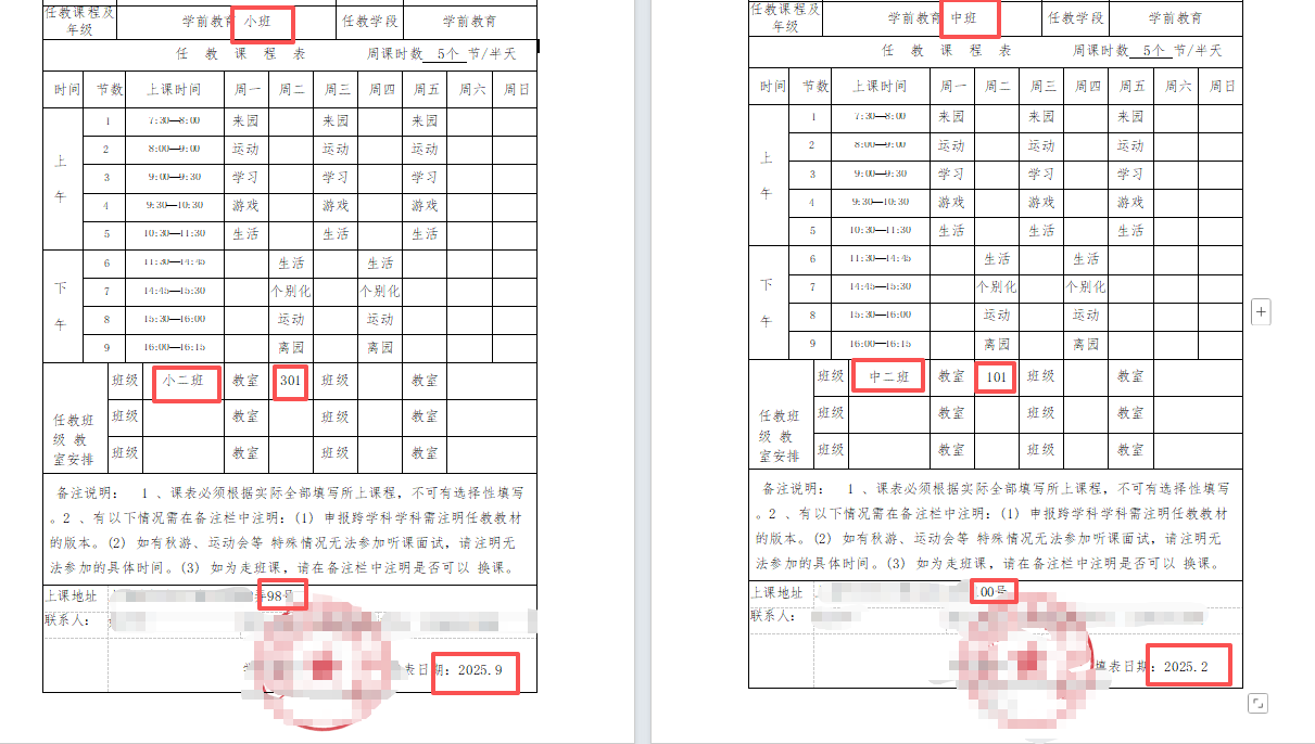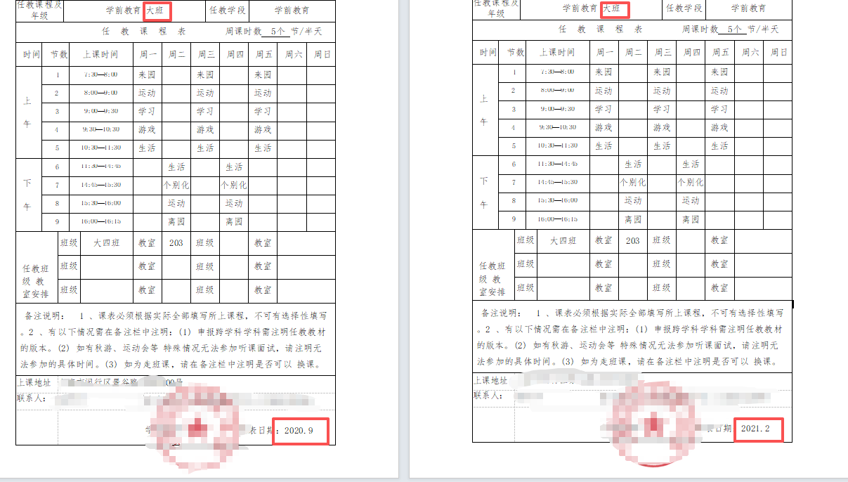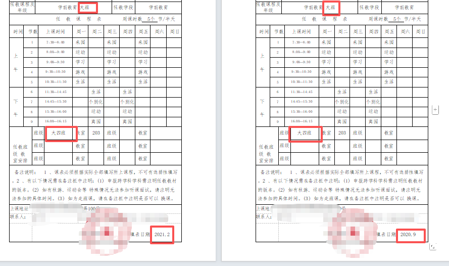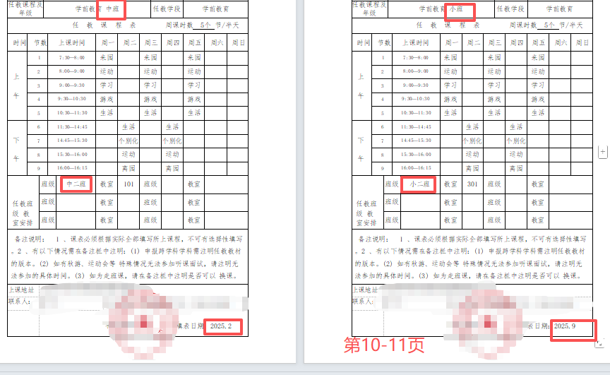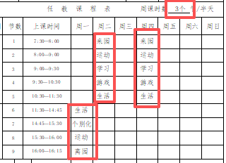 我做另一位领导的课程表时,就遇到她的职位调动,周课时数有5个半天、3个半天、2个半天的变化,此时所有的课程表内容都会变动。