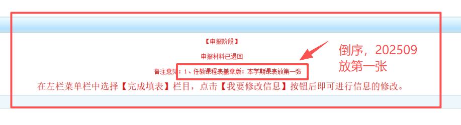 但是提交后退回,因为要求是课程表倒序,从最近日期开始
