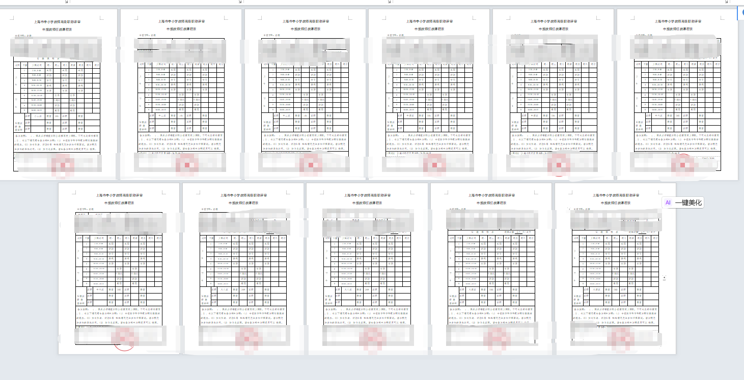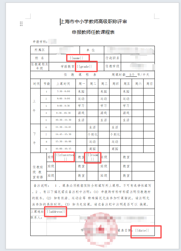 一些完全一样的信息,如申报学科、所属区、单位、职务,就在模版上预先填好。