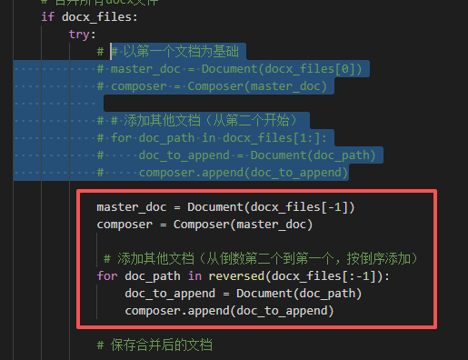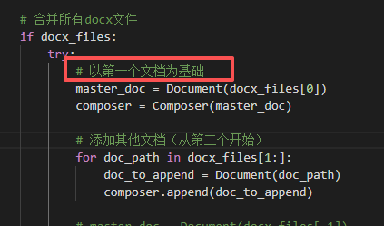 因为我的源代码以第一个文档为基础,复制其他docx到这第一个文档后面。