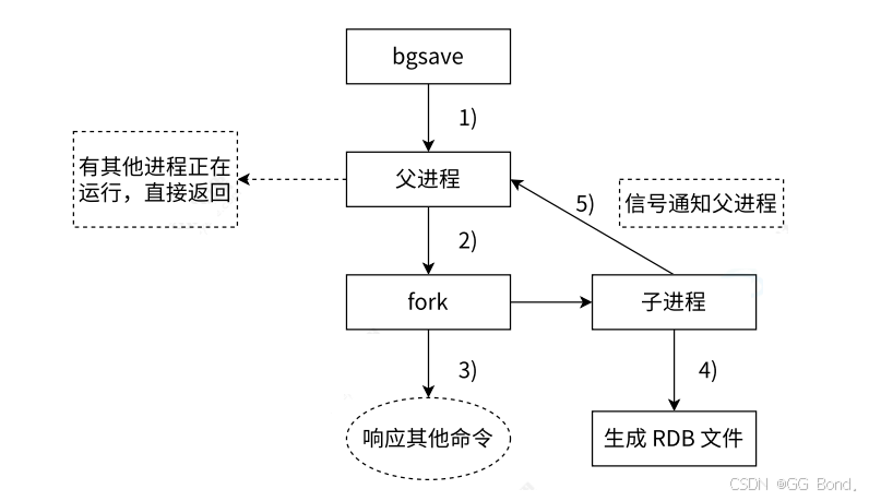 - 执行bgsave命令,Redis判断现在是否有正在执行的子进程,比如RDB/AOF子进程,如果有,bgsave直接退出