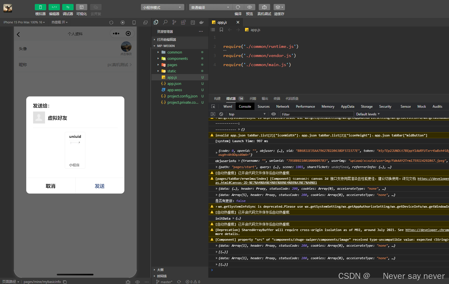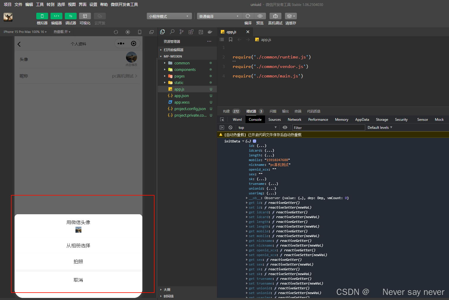 在实际项目开发中,这些 open-type 通常会组合使用来满足不同的业务需求。最常见的场景是用户信息采集流程:**首先通过 chooseAvatar 让用户选择头像,配合 type="nickname" 的 input 组件收集昵称,然后在需要手机验证的关键节点使用 getPhoneNumber 获取手机号。**这样的组合既符合平台的隐私规范,又能提供流畅的用户体验。