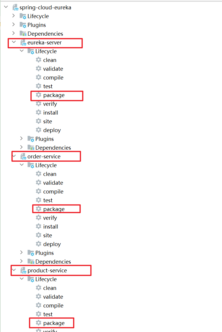 采用 Maven 进行打包,需要对三个服务分别进行打包