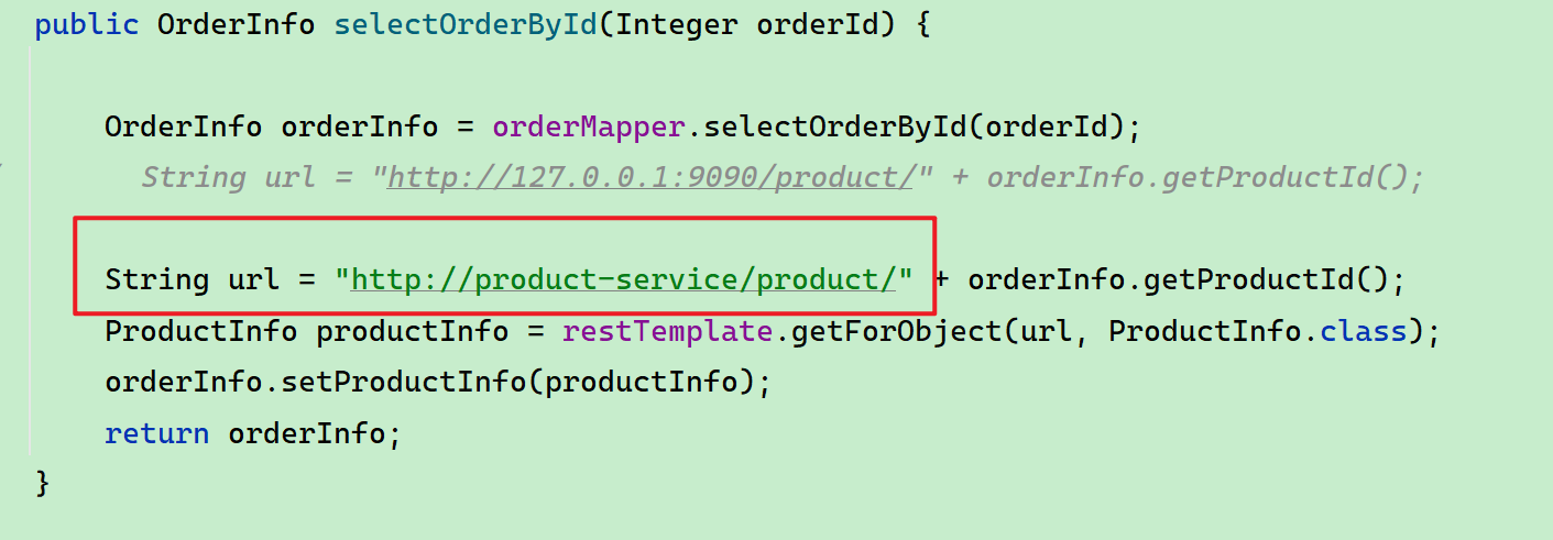 orginalUri.getHost() 从 uri 中获取到了路径的主机名,也就是服务 id,product-service