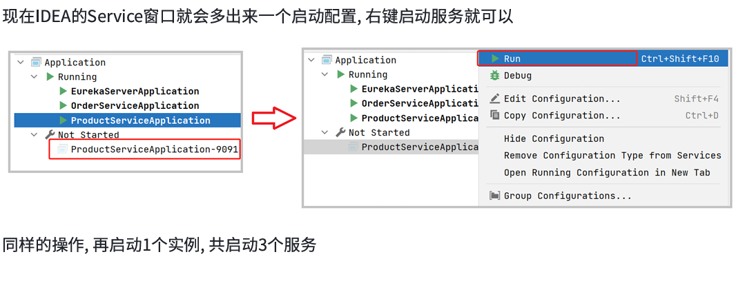 此时观察 eureka,可用看到 product-service 下有三个实例。
