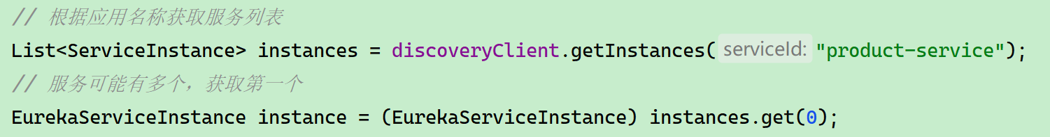 根据应用名称获取到了服务实例列表,从列表中选择了一个服务实例。