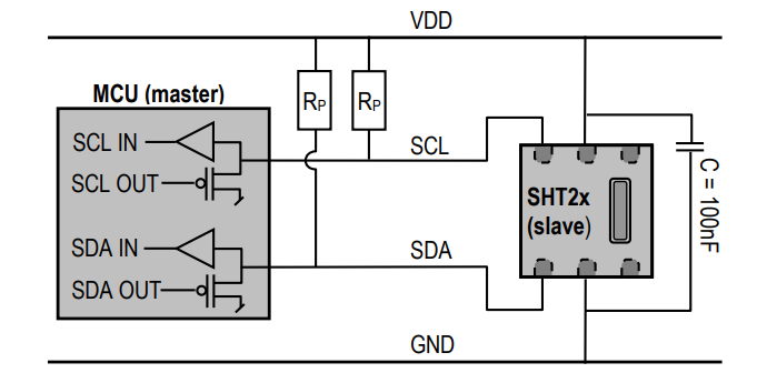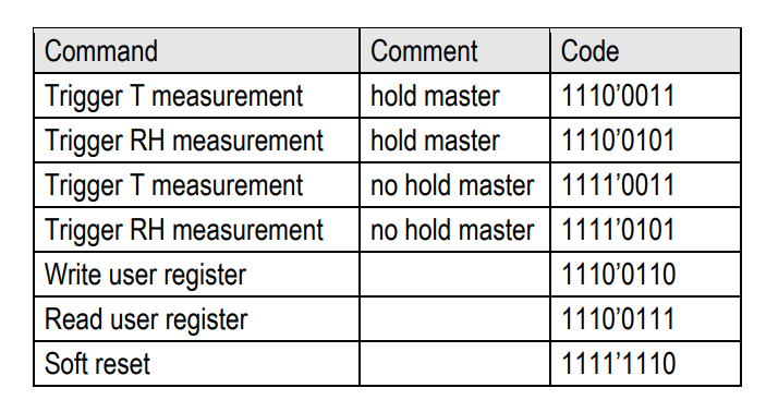 默认分辨率设置为 12 位相对湿度和 14 位温度读数。测量数据以两字节数据包的形式传输,即 8 位长度的帧,其中最高有效位(MSB)先传输(左对齐)。每个字节后都跟有一个确认位