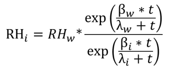 对于冰面上方的相对湿度 RHi,其数值需要由温度 t 下水面上方的相对湿度 RHw 转换而来: