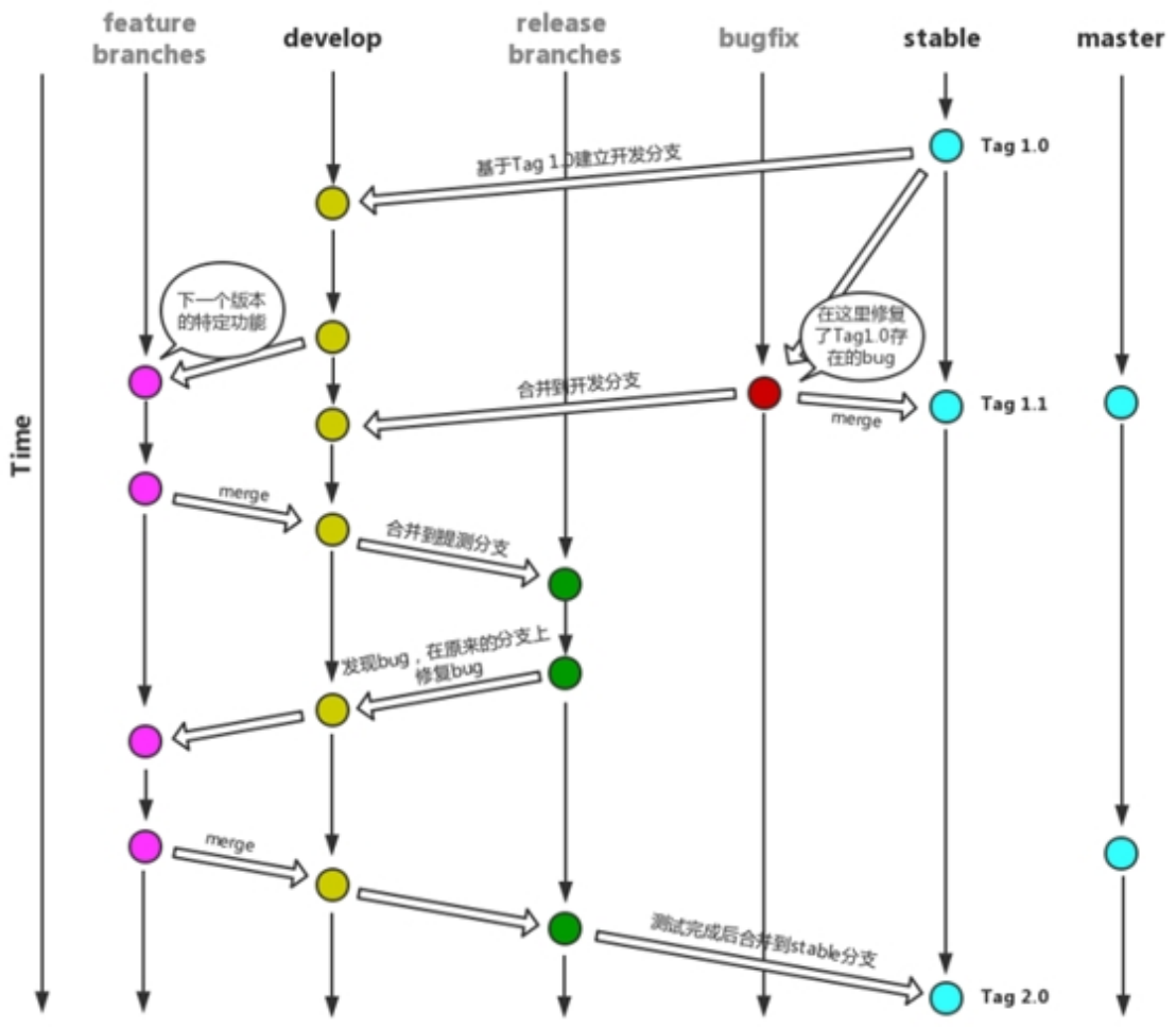 release:release 分支可以认为是 stable分支的未测试版。比如说某一期的功能全部开发完成,那么就将 develop 分支合并到 release分支,测试没有问题并且到了发布日期就合并到 stable分支,进行发布。