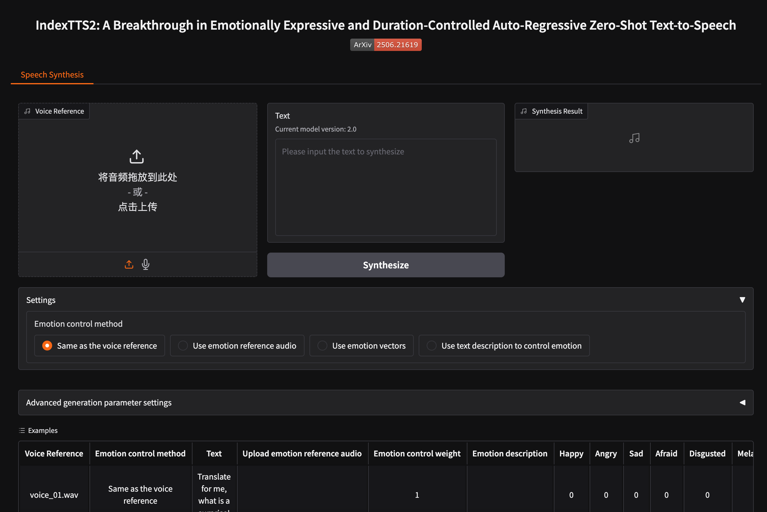 IndexTTS2支持多种参数调整,以获得最佳的语音质量: