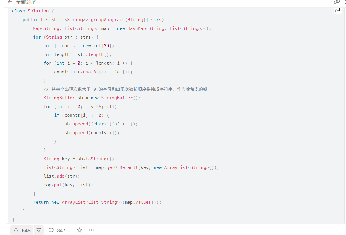 题目要将字母异位词 组合在一起说明字母异位词 一定有他们的共性