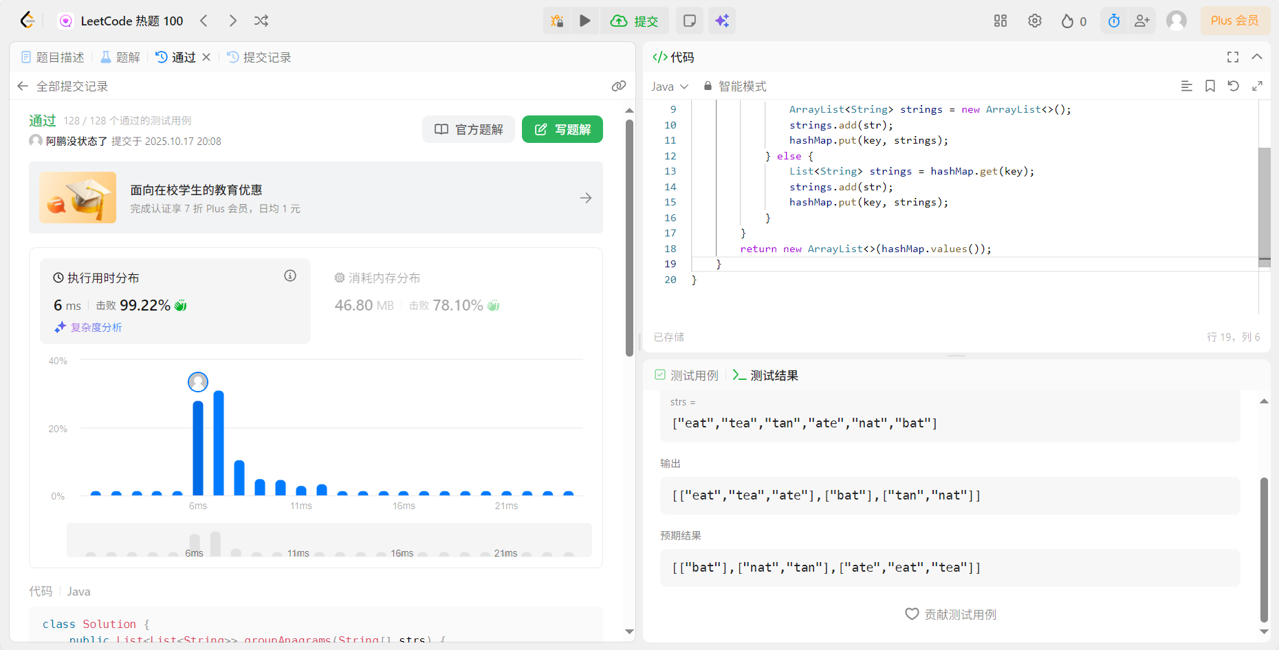 输出:[["bat"],["nat","tan"],["ate","eat","tea"]]