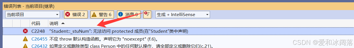 // 编译报错:: "Student::_stuNum": ⽆法访问 protected 成员