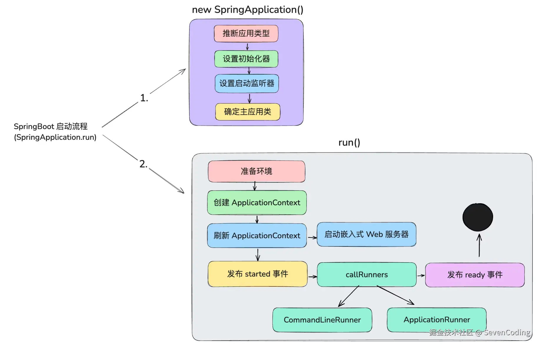 - 实现接口 ApplicationRunner 或者 CommandLineRunner 的run方法,这两个接口实现方式一样,它们都只提供了一个 run 方法