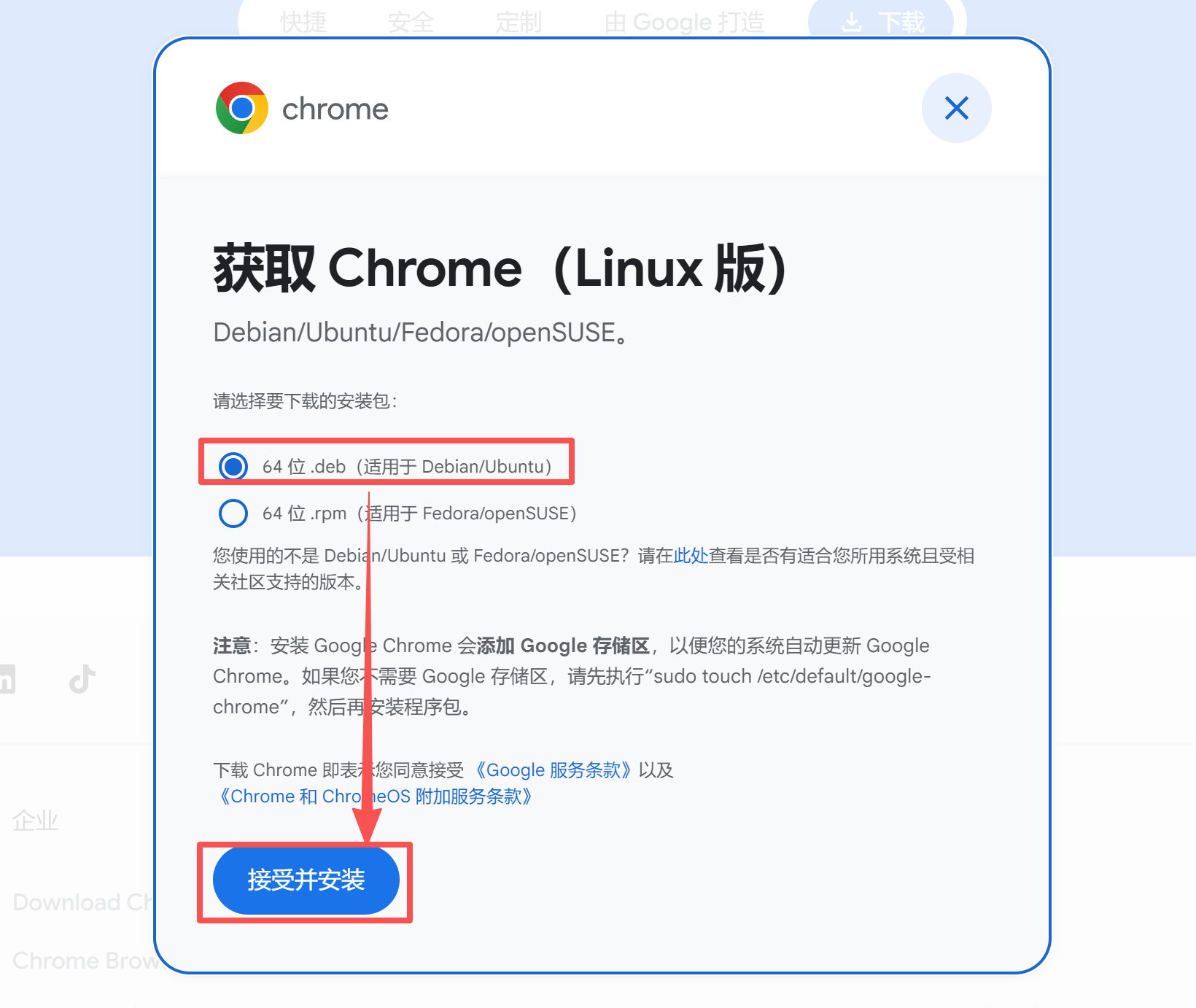 1.3、根据系统构架,选择对应的版本,点击【接受并安装】按钮;