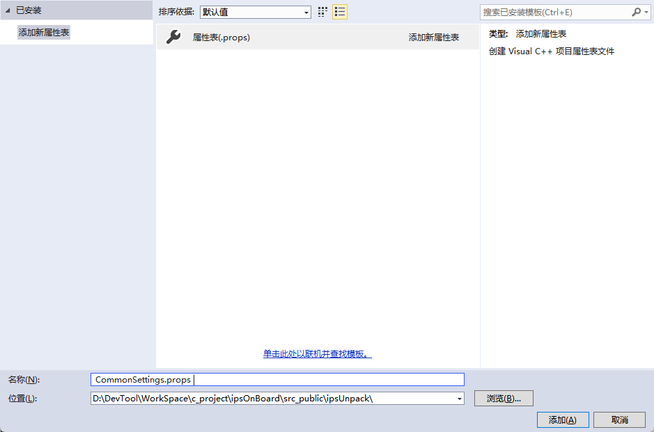 (2)属性管理器 →添加新项目属性表, 命名为 CommonSettings.props