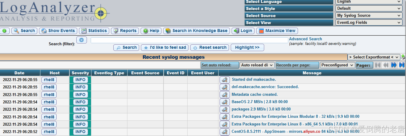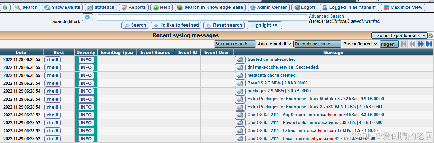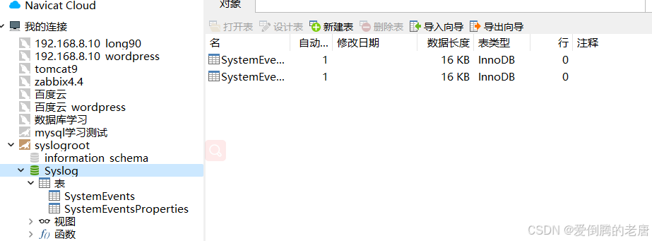 2.3、在服务端 192.168.8.8 查看数据是否保存到数据库 Syslog 中