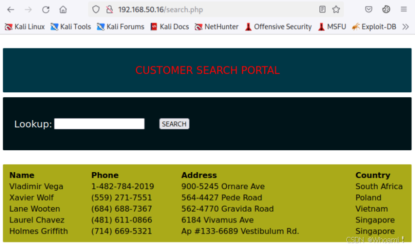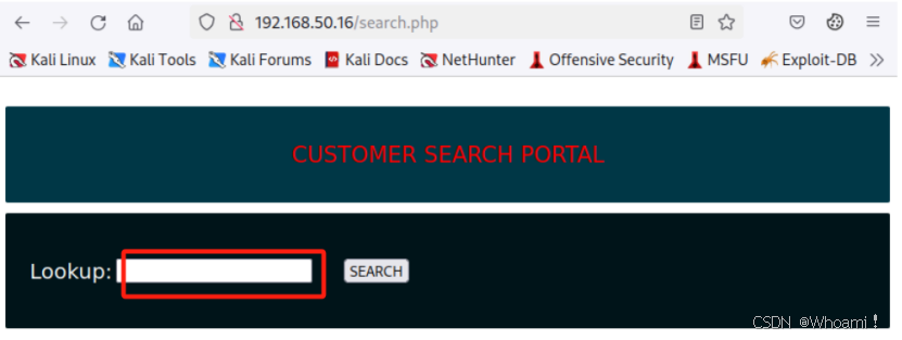 打开测试页面:http://<192.168.50.16>/search.php(实验环境的,公网无法打开,仅作展示)