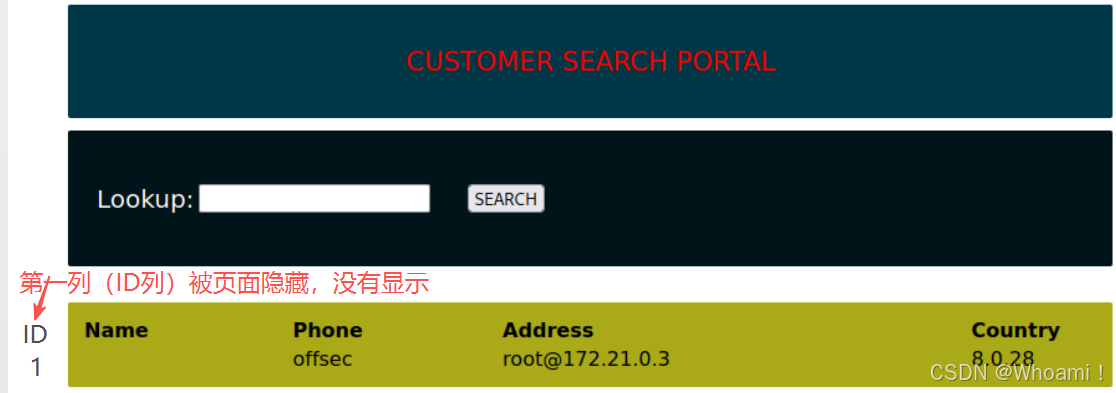 然后,点击SEARCH来检索customers表中的所有数据,下图出现4列: