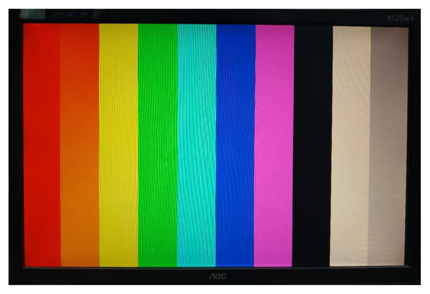 程序下载完成后,如图 36‑46所示,VGA显示器显示出十色彩条,和预期实验效果一致。