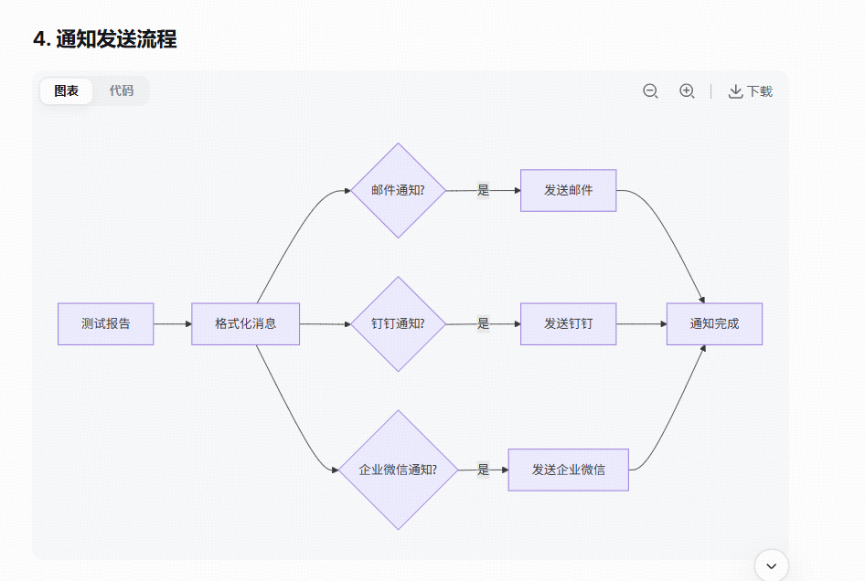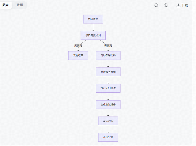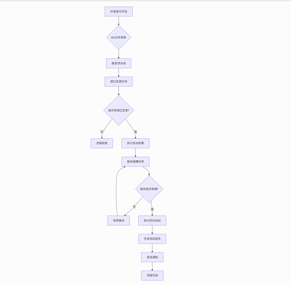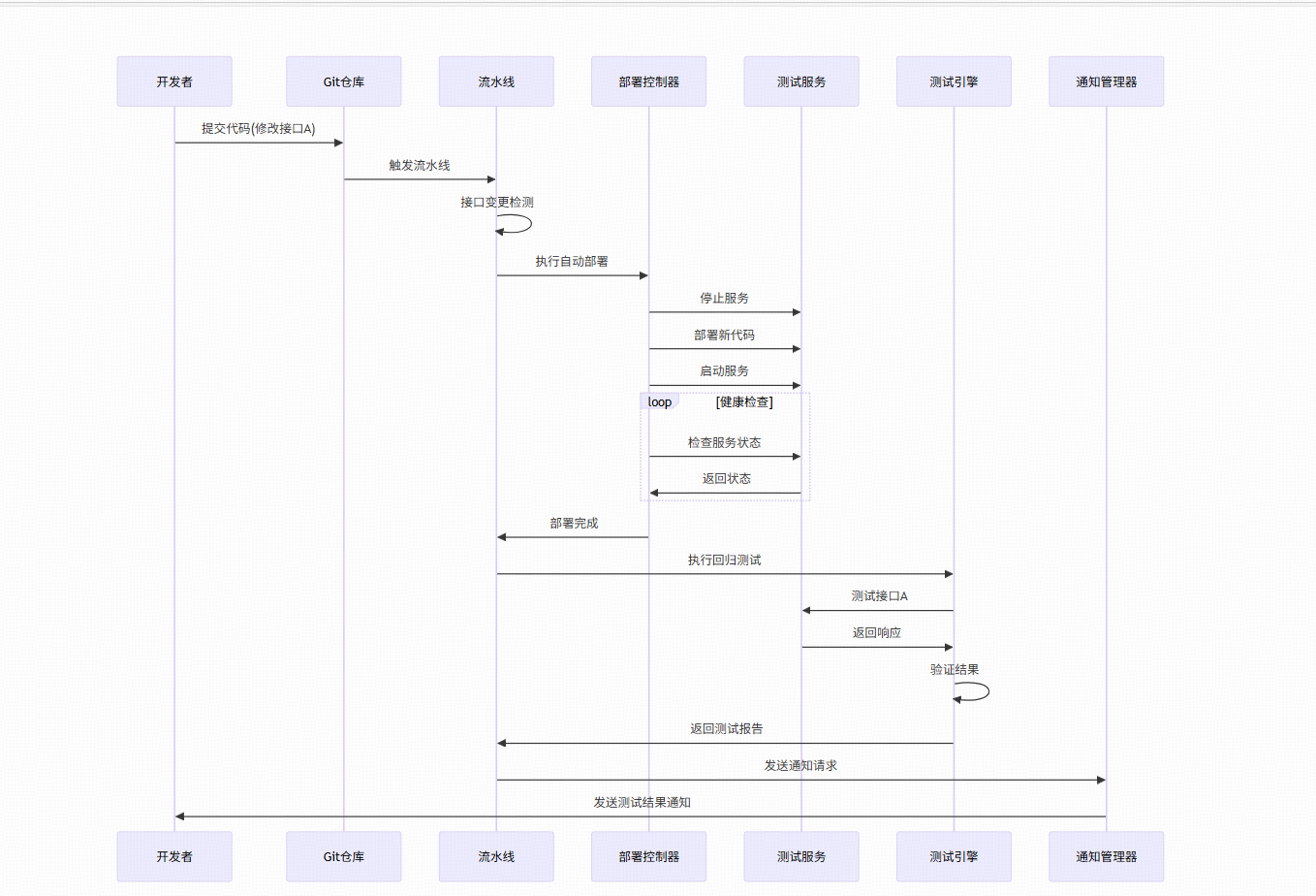 开发修改了接口A,这时候部署了,那自动化脚本部署感知到开发修改了代码并部署了代码,就会触发脚本回归和通知,