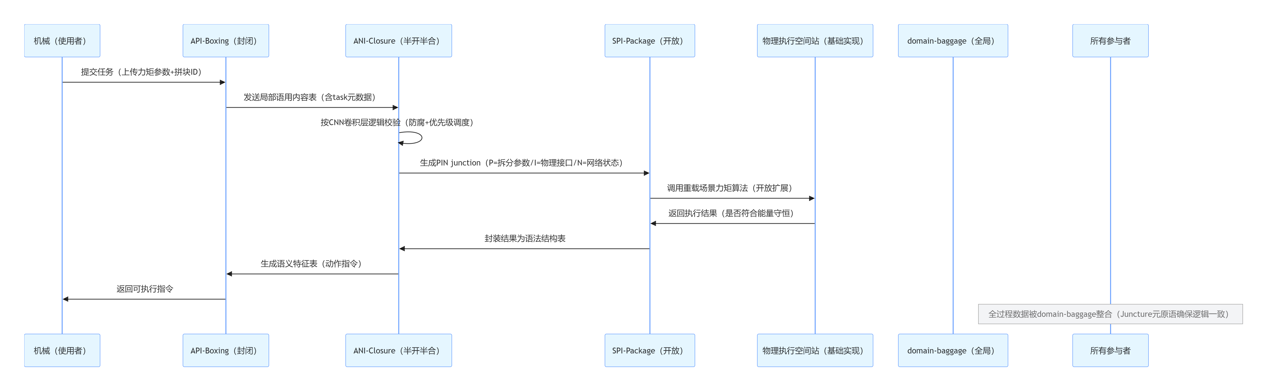 - ANI-Closure(半开半合):框架内核接口,封闭 CNN 三层分析逻辑(提取→表征→适配),开放接口连接 API 与 SPI,隔离外部环境干扰(如数据格式差异、设备协议不同),对应 CNN 卷积层的 "全局特征适配";三类包总称 "domain-baggage(形而上学的包袱)",作为全局要素载体,整合所有交互数据与规则。
