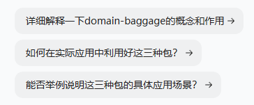 Q343、"三种"包"分别 是 封闭的,开放的 和半开半合的, 总称就是 今天最前面 说的 形而上学的包袱(domain-baggage" 是指 : 封闭的API-Boxing,开放的SPI-Package(想想为什么是开发的?) 和半开半合的 ANI-Closure,您的回复 中有错位错配 和丢项 。另外 「P\I\N」结 我前面使用了 juncture 是笔误,应该是PIN junction(SPI-Package 中)。 而Juncture应该是 domain-baggage中的,是元级别的原语primitive。请重新理解一下