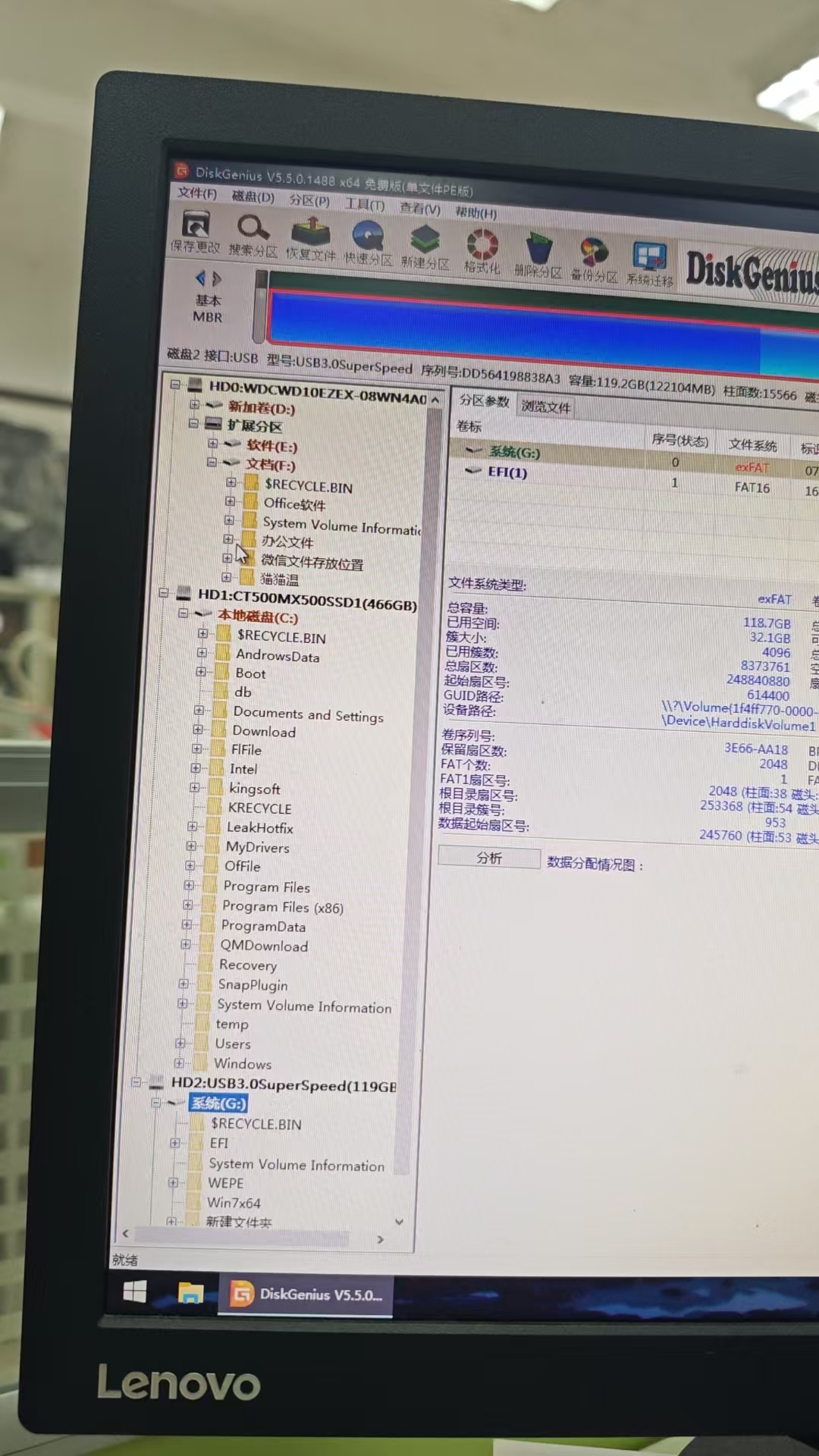 图中的 HD1:CT500MX500SSD1 是电脑原本的系统